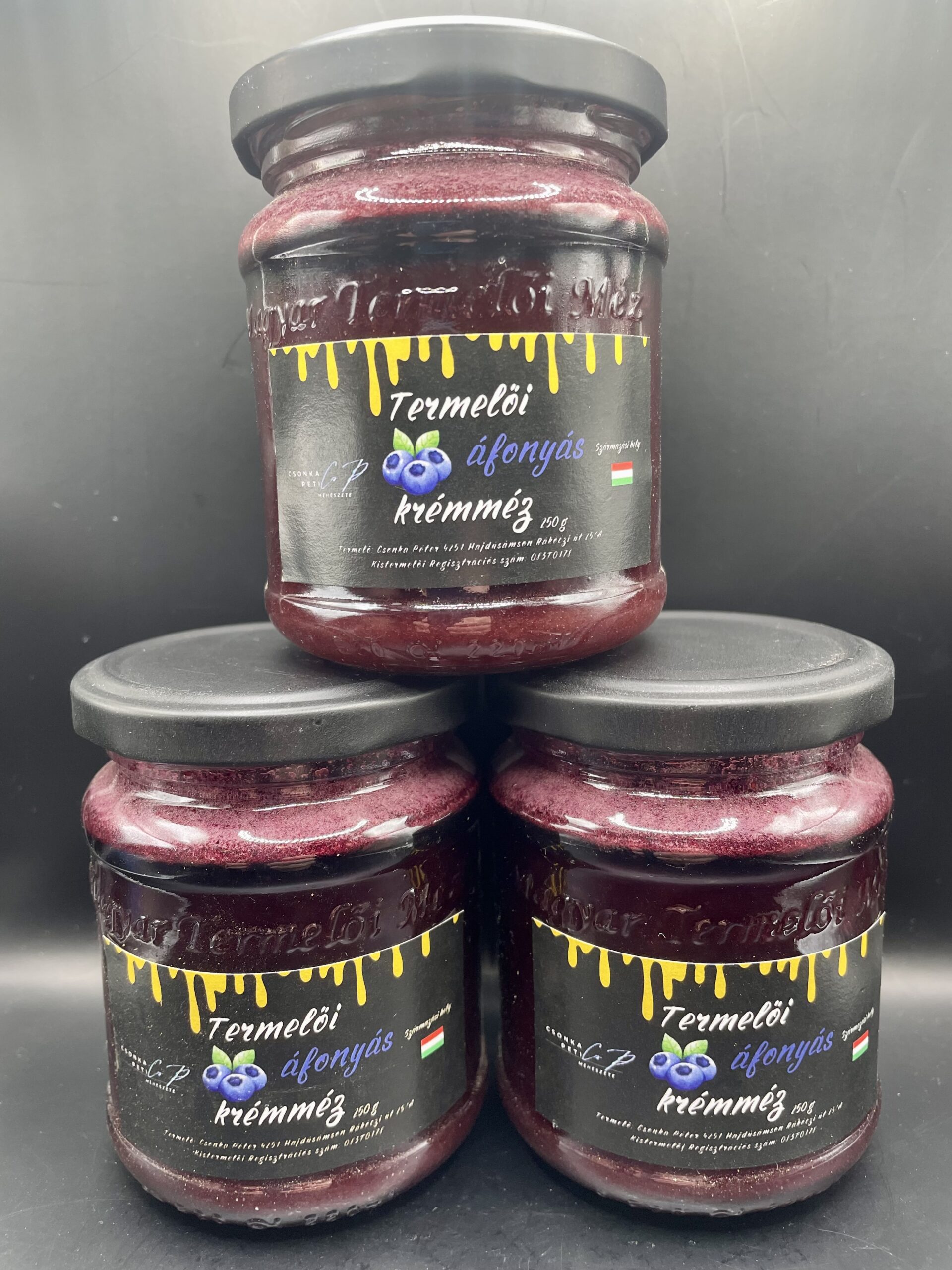 Az Áfonyás krémméz egy prémium minőségű, krémes állagú méz, amelyben a vegyes virágméz alap ízét harmonikusan egészíti ki liofilizált áfonya. Ez a termék mesterséges adalékoktól mentes, természetes ízélményt nyújt, gazdag antioxidánsokban, amelyek közismertek egészségvédő hatásaikról. Az áfonyás krémméz fogyasztható önmagában desszertként, süteményekhez, palacsintához vagy teába téve, támogatva az immunrendszert és jó hatással lehet a vérszegénységre és a torok tisztítására is. Kézzel készített, természetes alapanyagokból előállított termék.